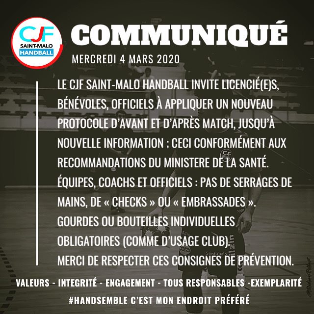 Communiqué officiel à retrouver sur le site de la fédération : https://www.ffhandball.fr/fr/articles/articles-publies/saison-2019-2020-arret-definitif-des-championnats-amateurs-et-annulation-de-la-coupe-de-france
