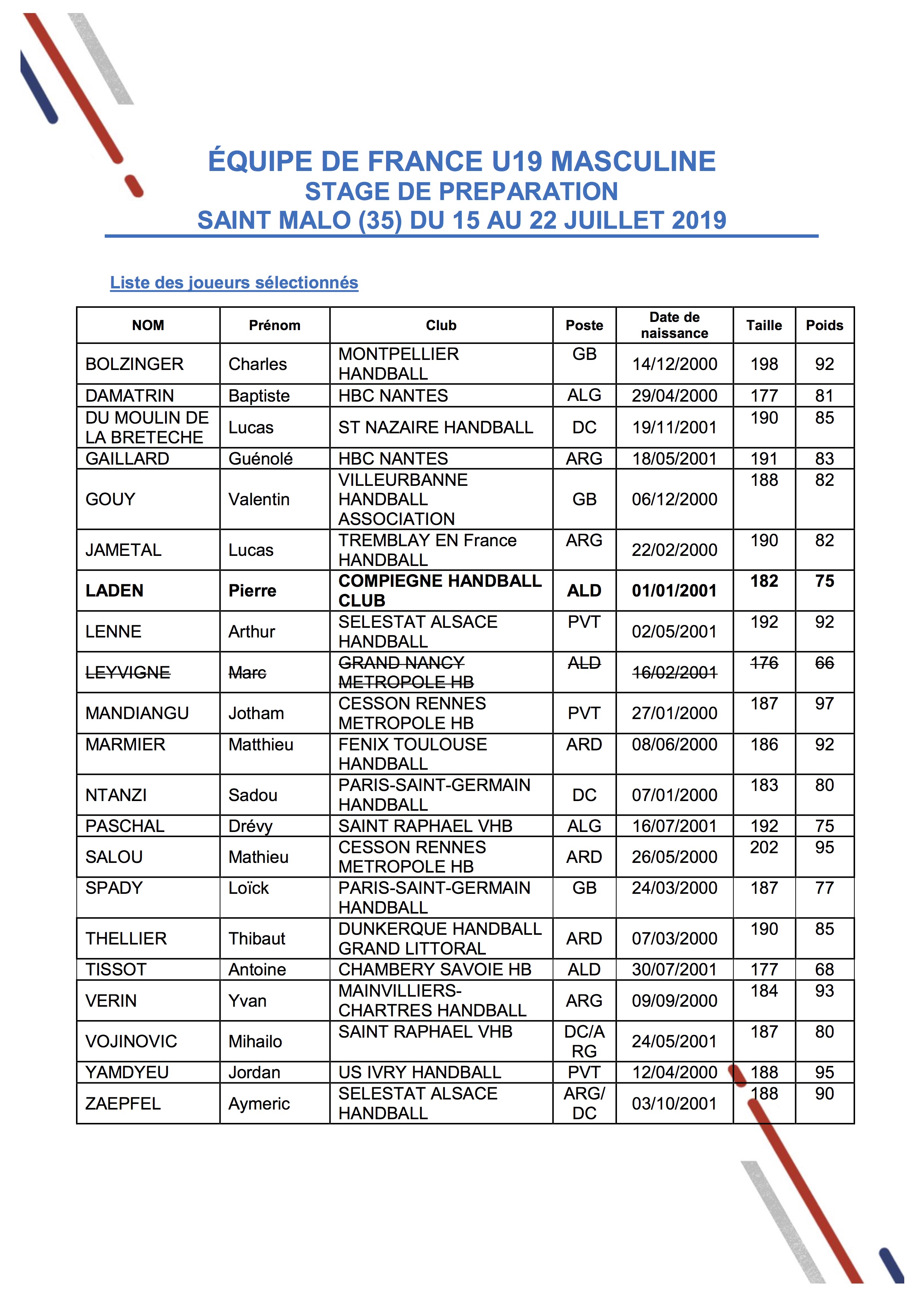 Plus d’infos sur la délégation française U19 masculine, cliquez FFHB