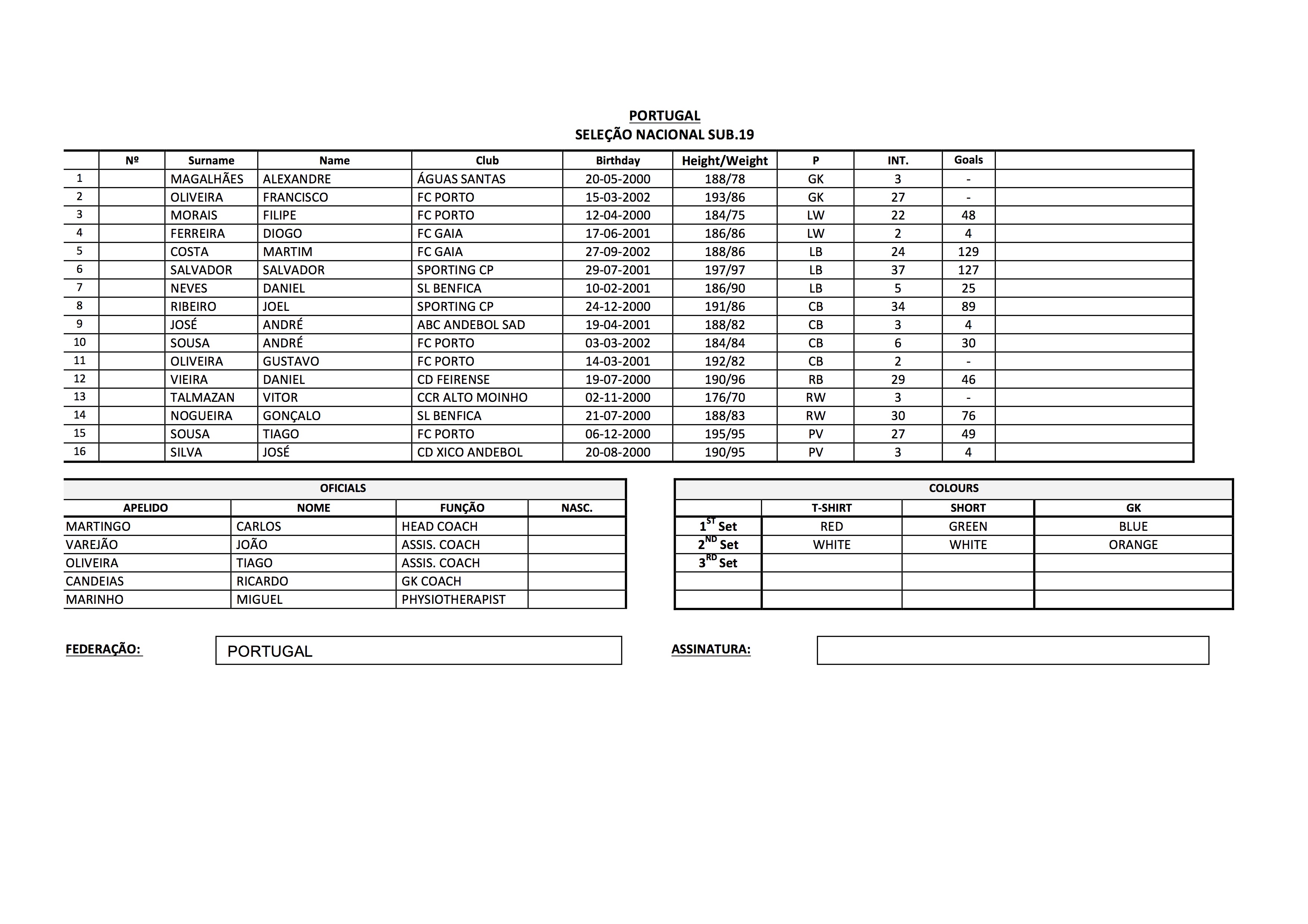 LA DÉLÉGATION PORTUGAISE U19 MASCULINE